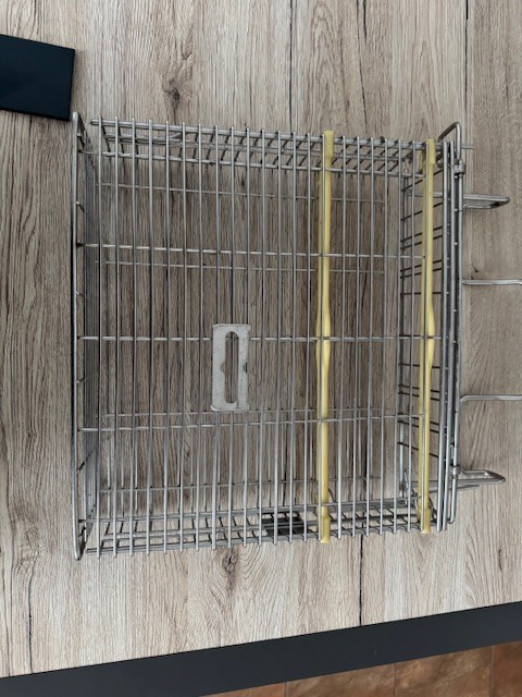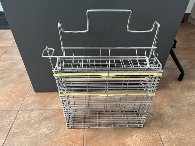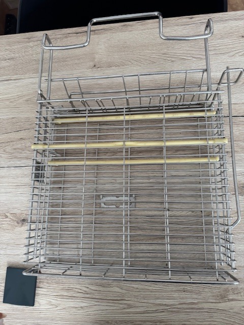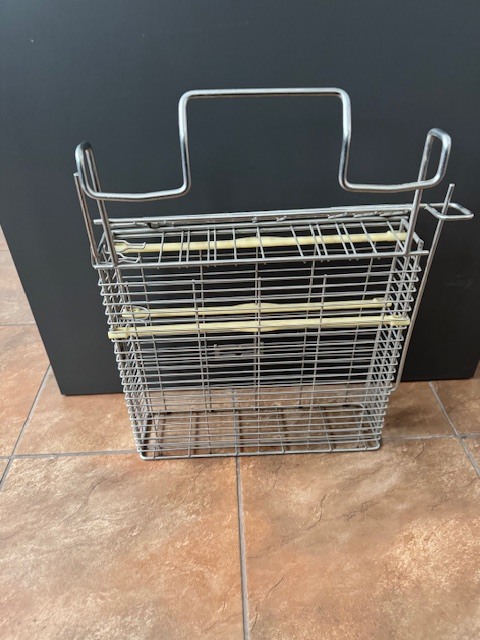 Zamykany kosz przeznaczony do sterylizacji oraz bezpiecznego przechowywania noży i akcesoriów w zakładach przetwórstwa mięsnego, gastronomii oraz branży spożywczej. Wykonany ze stali nierdzewnej, gwarantuje odporność na korozję oraz łatwość utrzymania wysokiego standardu higieny. Wyposażony w praktyczną rączkę, która ułatwia transport i codzienną obsługę. Zamykana konstrukcja zwiększa bezpieczeństwo użytkowania i ogranicza dostęp do ostrzy.