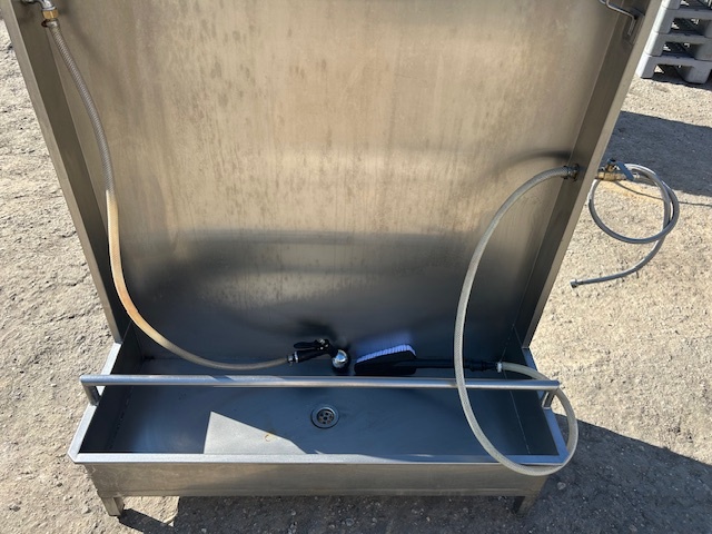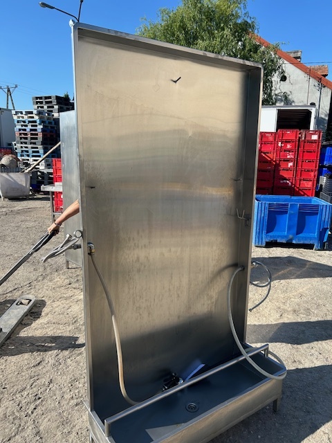 Konstrukcja wykonana ze stali kwasoodpornej zapewnia odporność na korozję, wilgoć oraz środki czyszczące. Myjka jest łatwa w obsłudze, trwała i prosta do utrzymania w czystości. Sprzęt sprzedawany jako używany — w dobrym stanie technicznym, gotowy do dalszej eksploatacji.