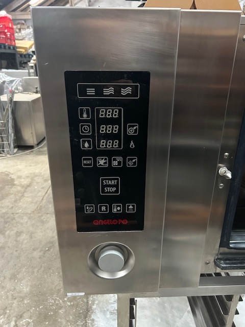 Piec konwekcyjno-parowy ANGELO PO FX61E1 na 6 × GN 1/1, o mocy 10 kW. Zaawansowane sterowanie programowalne, pełna regulacja wilgotności oraz automatyczna kontrola procesów gotowania. Profesjonalne rozwiązanie dla gastronomii i cateringu.
