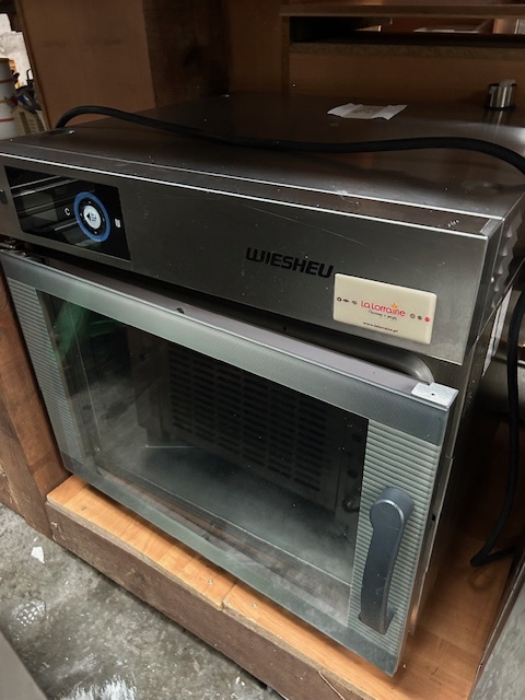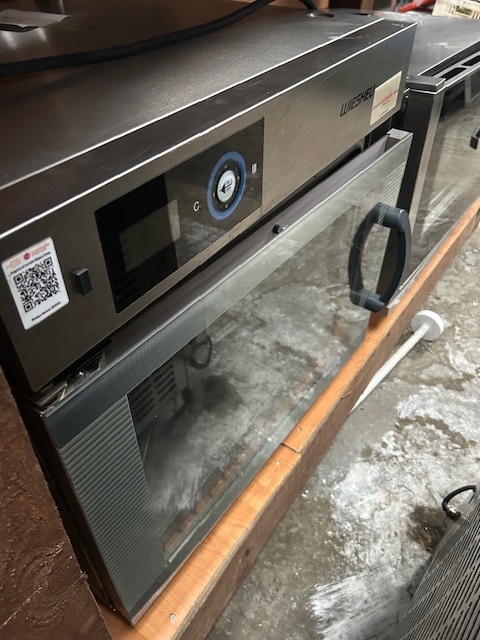 Piec konwekcyjno-parowy WIESHEU MINIMAT 64L na 5 blach 600 × 400 mm. Elektroniczne sterowanie, dwukierunkowy wentylator i możliwość pracy ze zbiornikiem wody lub podłączeniem stałym. Idealny do piekarni i punktów bake-off.