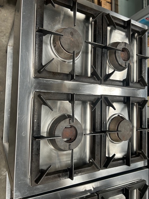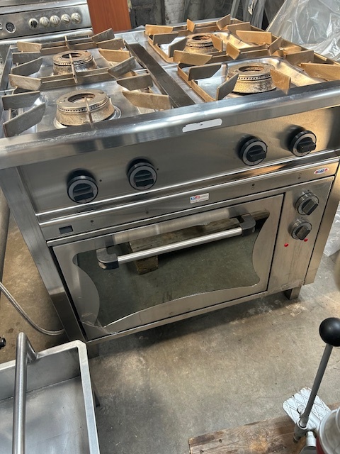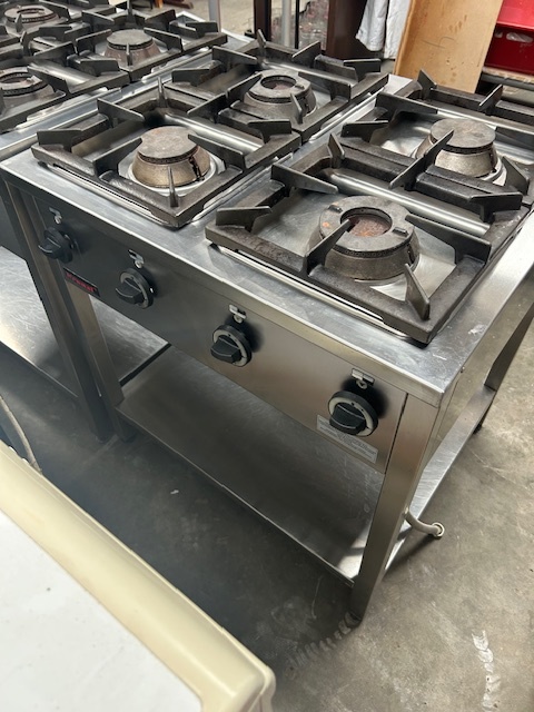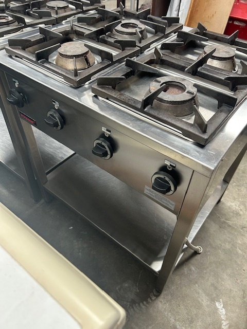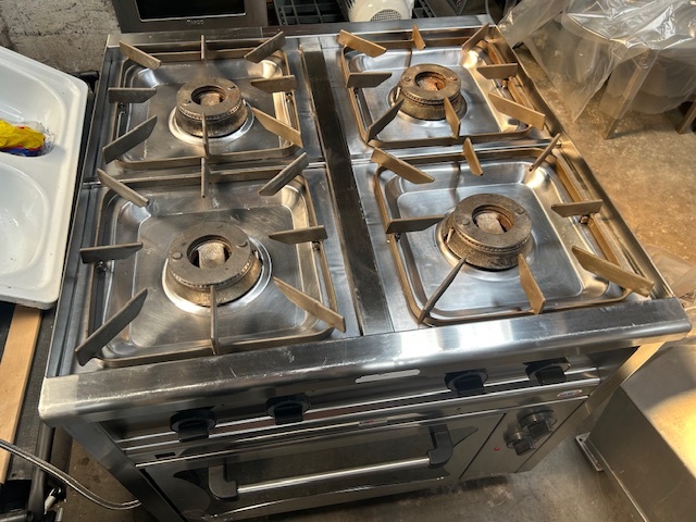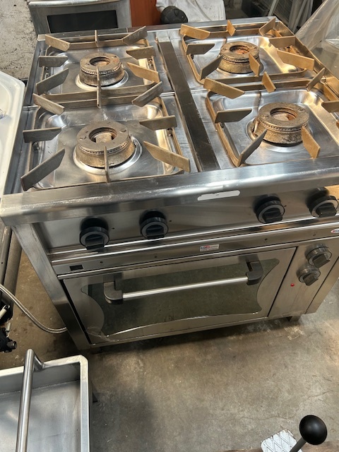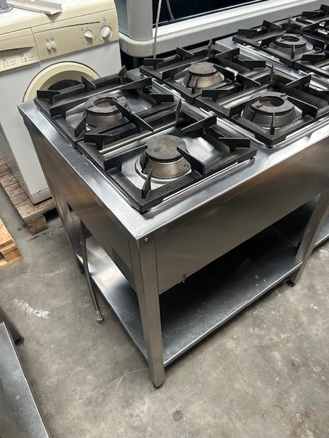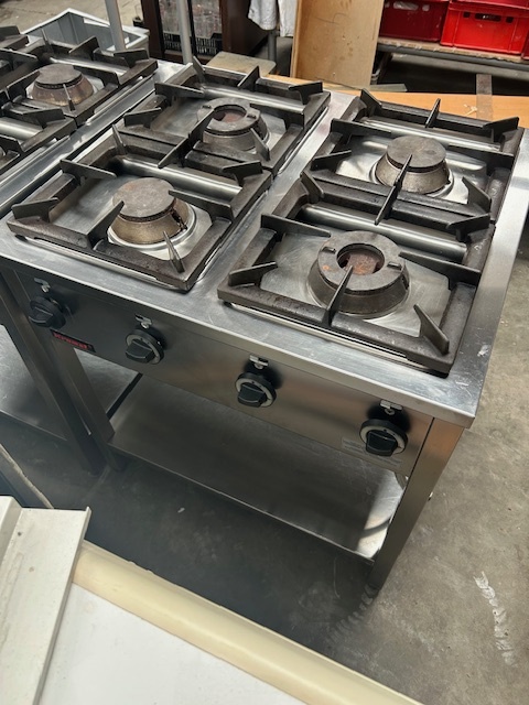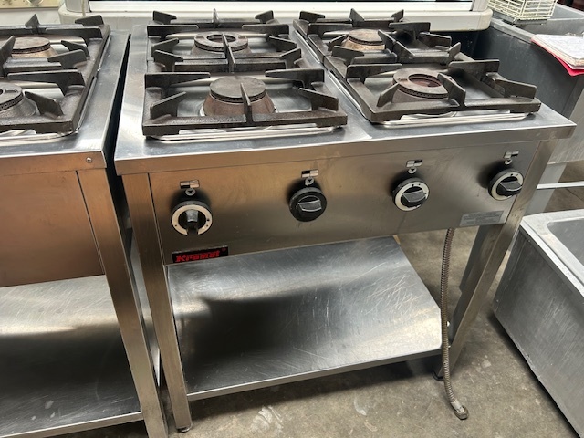 Kuchnia gazowa 4-palnikowa KROMET 000.KG-4M, 24 kW, linia Compact 700. Wolnostojąca, profesjonalna, z zabezpieczeniem przeciw wypływowym. Sprzęt używany, w pełni funkcjonalny.