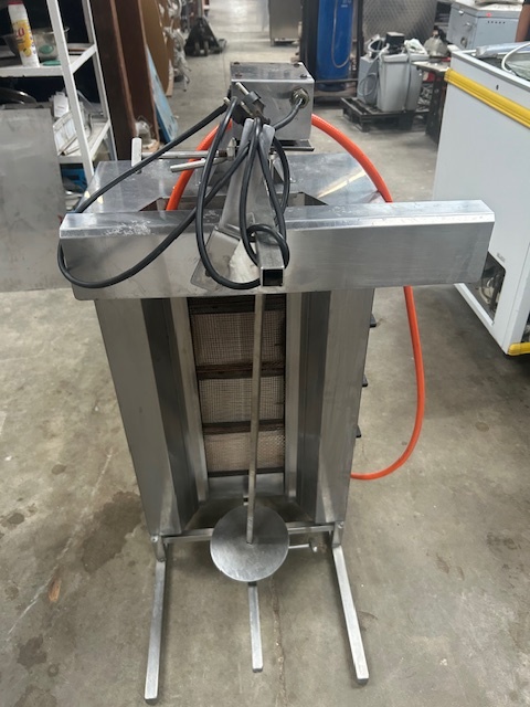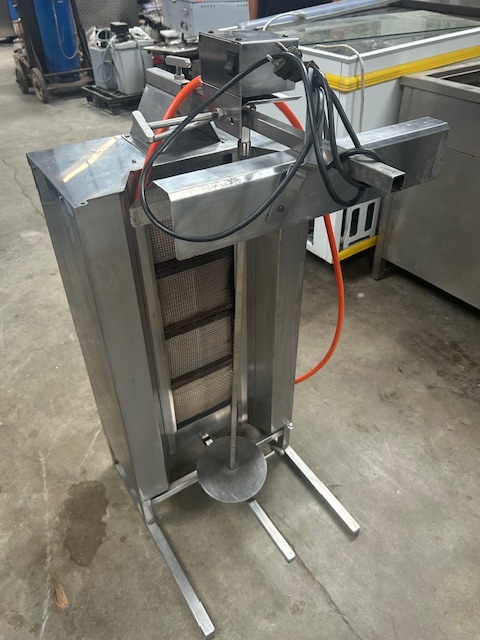 Opiekacz gazowy do kebaba / gyrosa KLG221, 4 palniki, wsad do 60 kg mięsa. Niezależne strefy grzewcze, regulowana sztyca i automatyczny napęd. Profesjonalne urządzenie do intensywnej gastronomii.