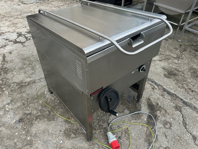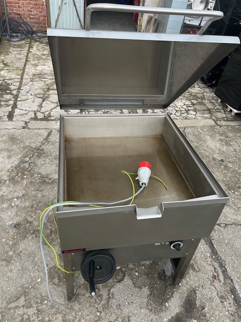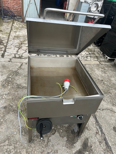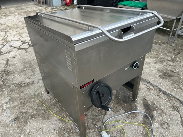 Patelnia elektryczna przechylna KROMET o pojemności 64 l i mocy 9 kW. Wykonana ze stali nierdzewnej, z ręcznym przechyłem misy. Profesjonalne urządzenie do intensywnej gastronomii.