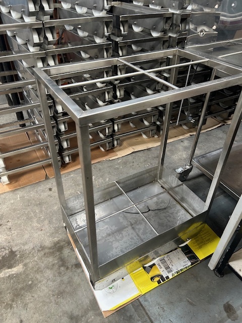 Wózek przeznaczony do transportu oraz przechowywania kijów wędzarniczych w zakładach przetwórstwa mięsnego i wędzarniach. Konstrukcja umożliwia wygodne przemieszczanie większej ilości kijów w obrębie hali produkcyjnej lub magazynu. Kompaktowe wymiary pozwalają na łatwe manewrowanie nawet w ograniczonej przestrzeni roboczej. Rozwiązanie usprawnia organizację pracy i poprawia logistykę procesu wędzenia.